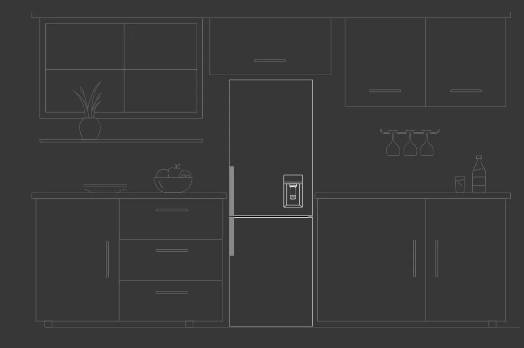 ظاهر شکیل با رنگ سفید براق، دستگیرههای مخفی و پنل نمایشگر لمسی LED، ظاهری لوکس و یکدست به این مدل بخشیدهاند. طراحی BMF به شما اجازه میدهد بدون باز کردن کامل دربها، به بخشهای مختلف دسترسی داشته باشید.
