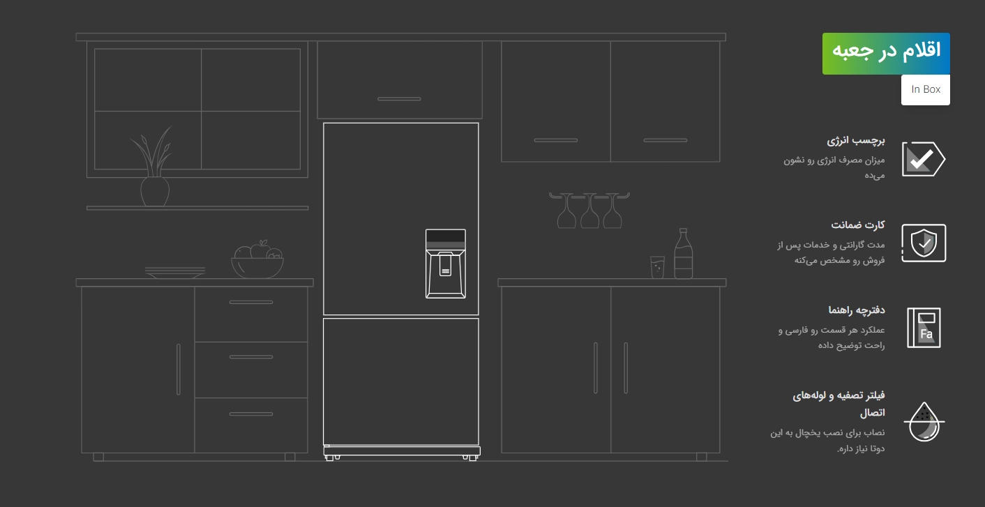 • جهت باز شدن در یخچال: به سمت راست (غیر قابل تغییر)