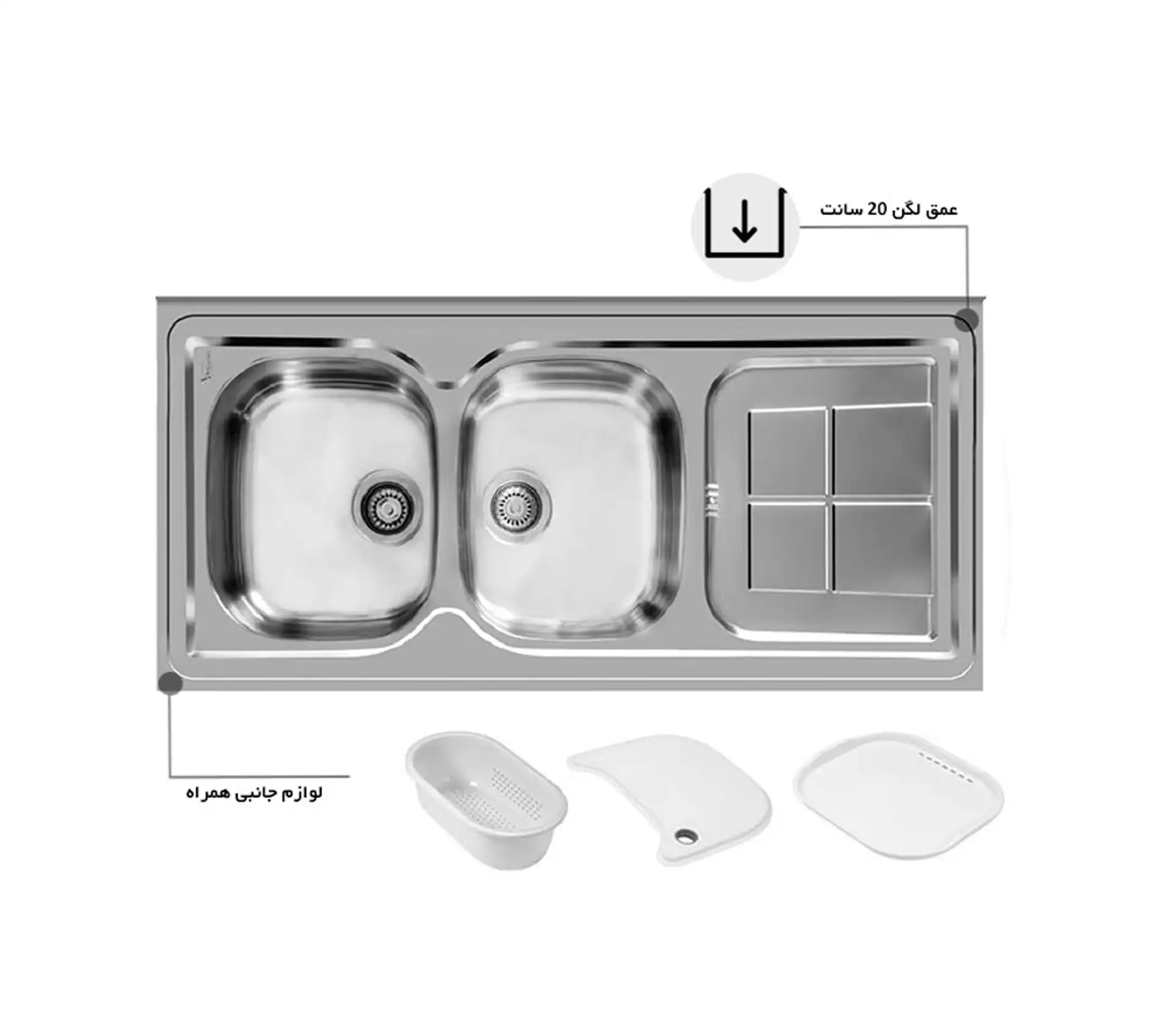 - طراحی زیبا و کاربردی: این سینک به گونهای طراحی شده که نه تنها از نظر زیبایی بلکه از نظر عملکرد نیز بهترین انتخاب است.