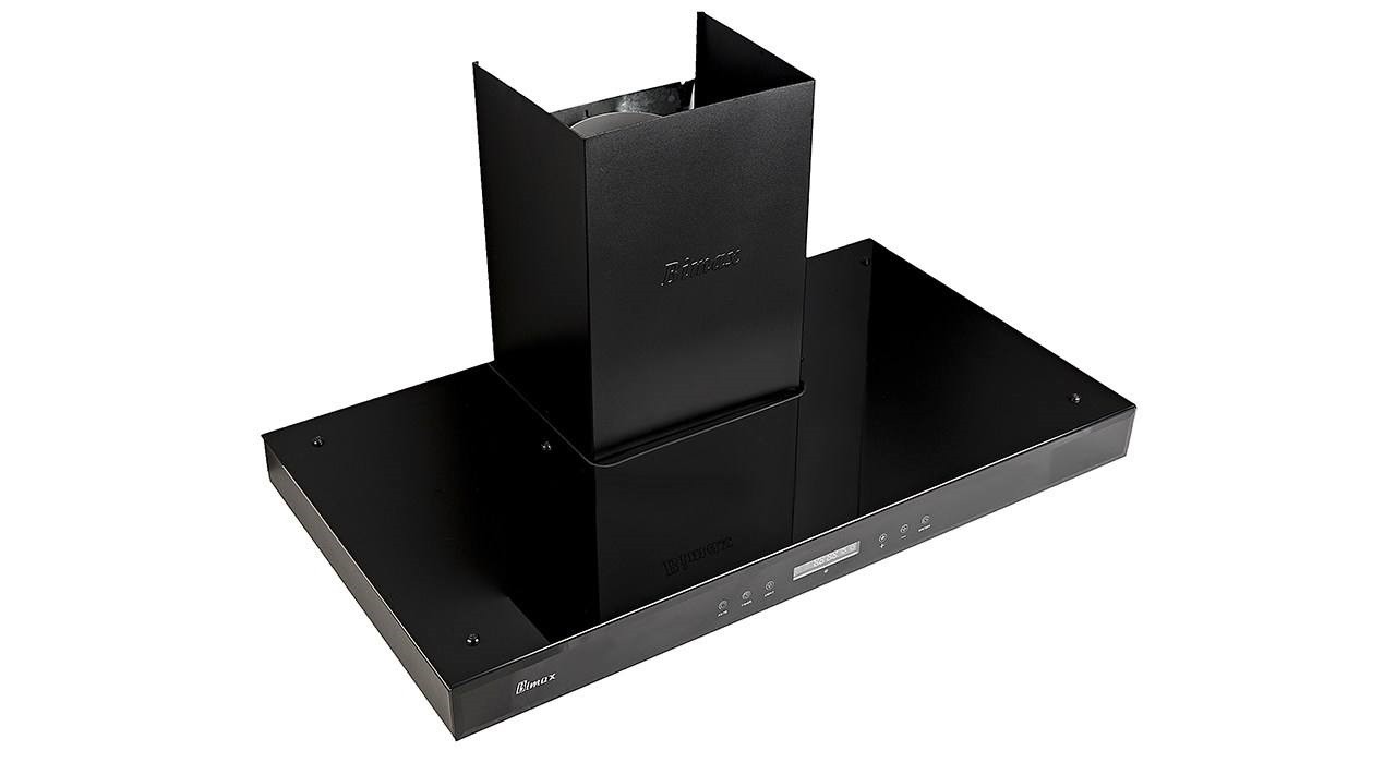 هود بیمکث B2028U مشکی به صورت شومینه ای از جنس فولاد ضد زنگ در قسمت طرفین و شیشه در قسمت جلو و به رنگ مشکی طراحی و تولید شده است .
